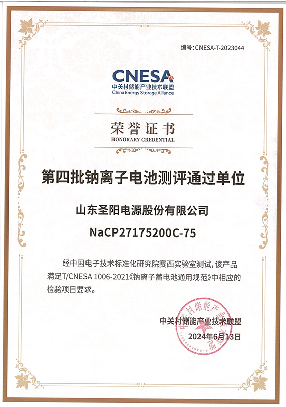 本次测评由工信部中国电子技术标准化研究院赛西实验室依据中关村储能产业技术联盟团体标准T/CNESA 10062021《钠离子蓄电池通用规范》开展权威检测,对电池的高低温电性能、倍率放电性能、快速充电性能以及短路、强制过放电、重物冲击、挤压、热滥用等电性能和安全性能进行检测验证,圣阳股份钠电池产品满足标准中相应的检验项目要求,产品稳定可靠的性能得到权威机构认可,这将有助于提升公司综合市场竞争力。